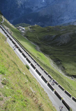 Der Pass hat rund 2000 Höhenmeter (Passhöhe 2760m), 48 Kehren, bis zur Passhöhe