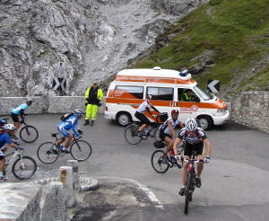 | Sanitätsdienst an einer Kehre | die letzte (48) Kehre | angekommen auf 2760 m |