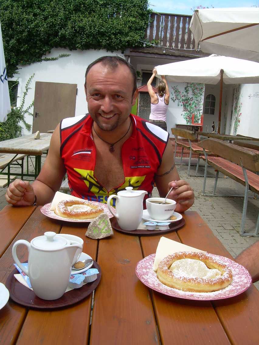 | Dinkelsbühl, | Michael als Biker | Kaffee in Maihingen |